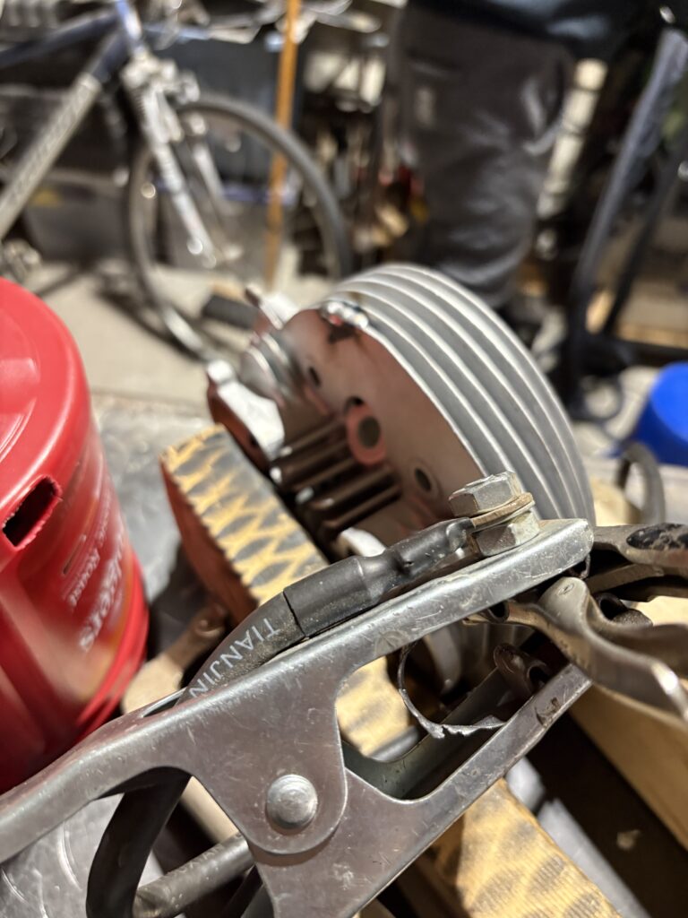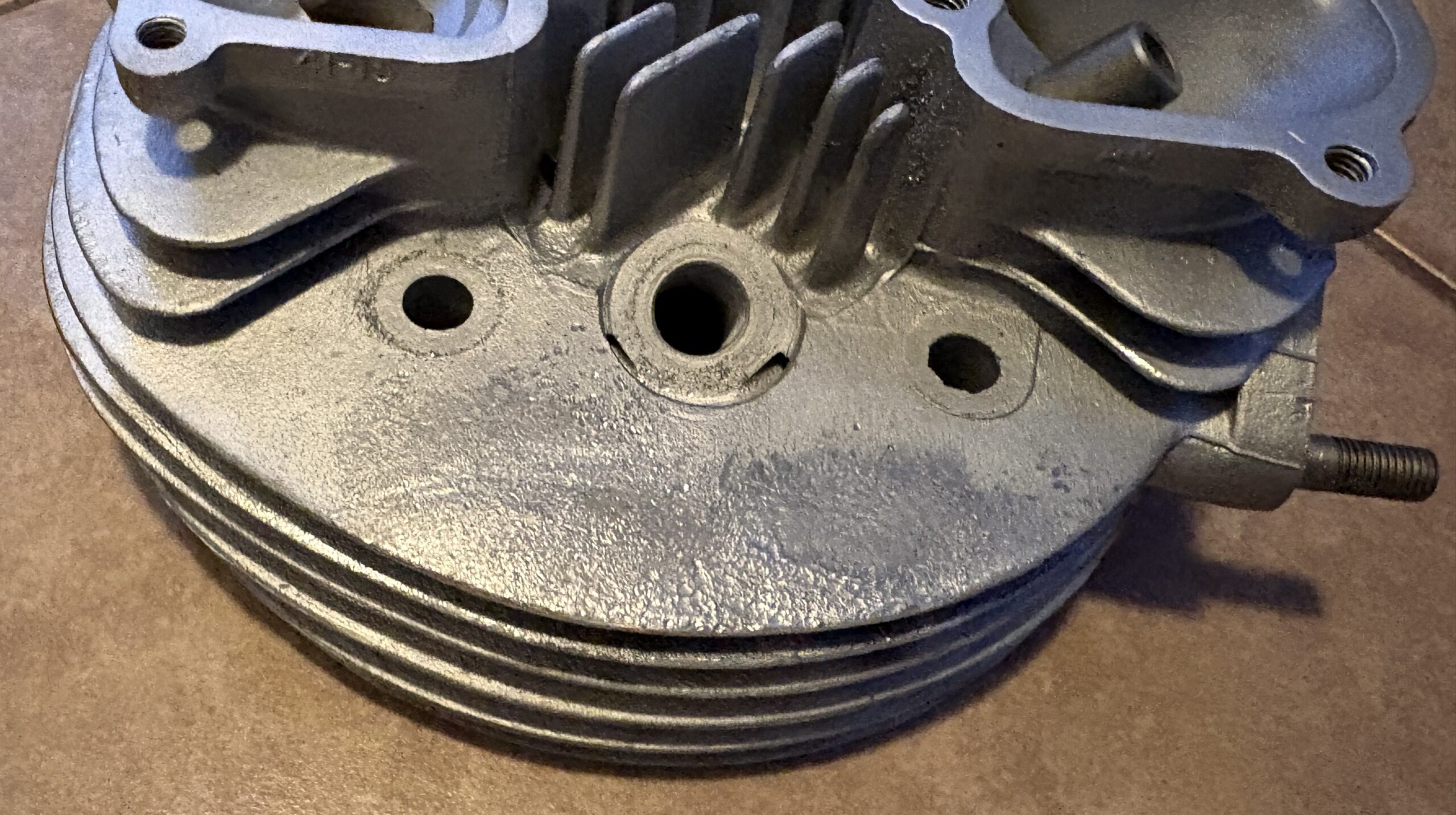I’ve finally gathered every last bit needed to rebuild the top end again—miracles do happen, apparently—but the barrel’s still sitting there looking like it lost a fight with time itself. I was hoping to give it a good going-over with the brass wire wheel, but of course the fins are packed tighter than a Scotsman’s wallet, so that’s not happening any time soon.