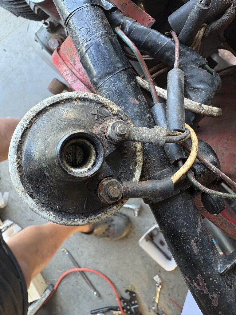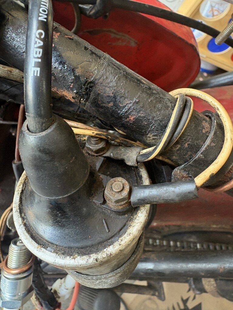 Some photos showing the new ignition cable built and installed. I also purchased a new coil ($65) for the system. It should be noted that as of now the BSA is a 6vDC system with a positive ground.