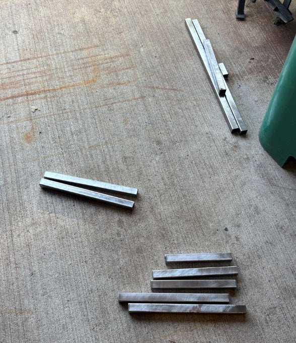 Neighbor setup a working table for me to measure and debur and you can see on the floor the finished pieces as well as some left-overs.