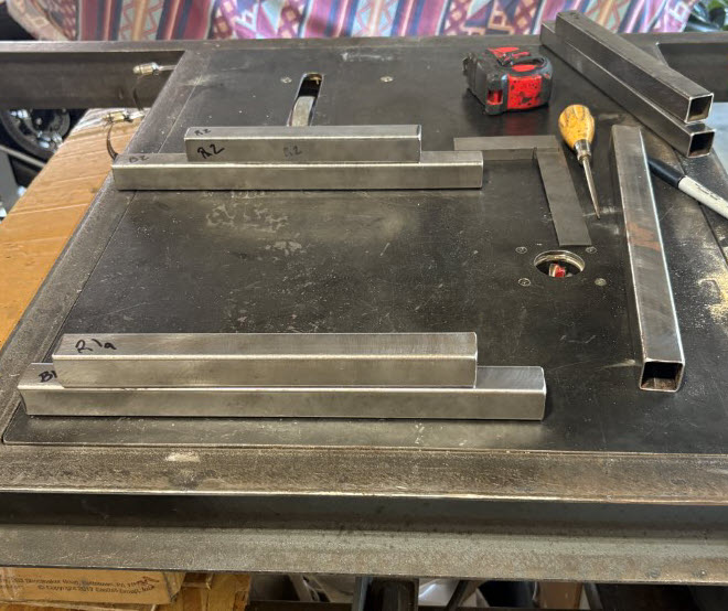 The last photo (without the book) is the assembly table where we’ll start to tack weld and assemble. Ended the day today with all pieces ready and marked for assembly. Tomorrow we (neighbor) welds.