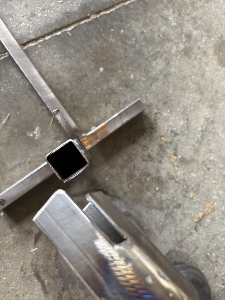 This is what it looks like so far. My neighbor did the welding and it’s tricky to do the tack welds and then how to keep everything square and aligned as you fill the welds (heat warping the steel). The part on the left we made so it fits together with a joint so that it can be removed. It’s only required if you tip the assembly down to work on either side of the motor.