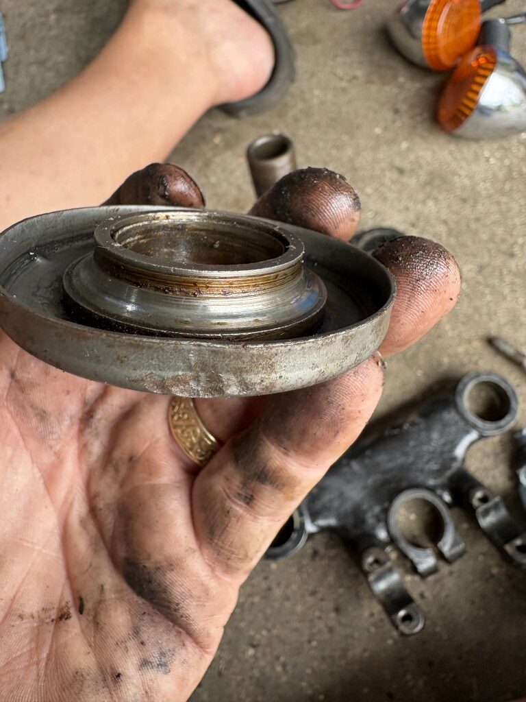 Today I wanted to get ready to rebuild the front end so had to complete the disassembly. Since I’m down 3 bearings of the 48 and likely the ones left are bad I’m planning 4 new bearing races and new ball bearings. For this I had 3 of the 4 races that need attention.