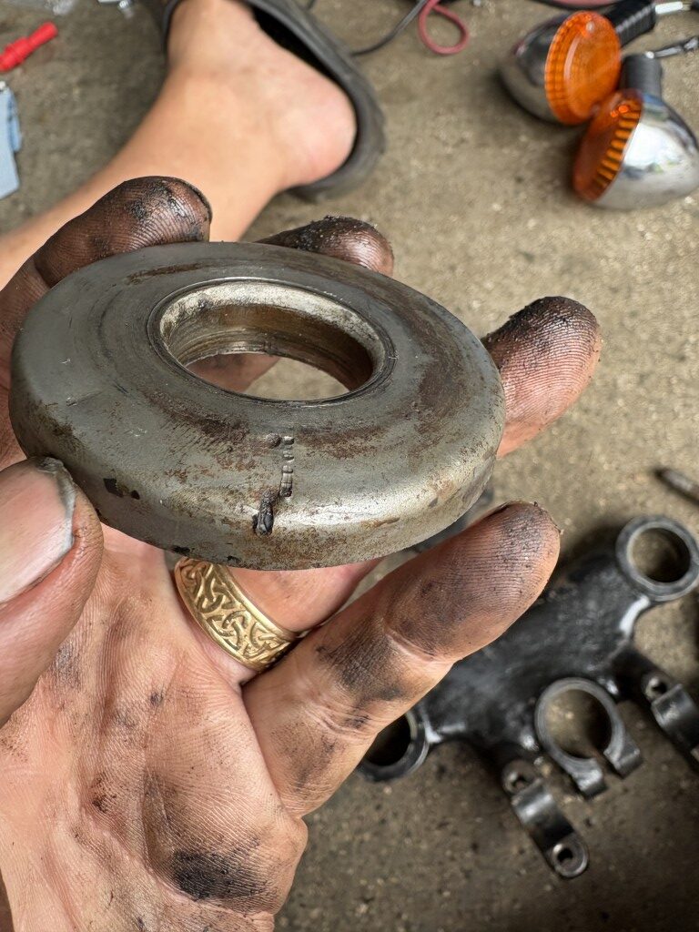 The state of the steering column lock nut above did make me aware that Willie had likely done some work to this area during his 10 years of riding fun.