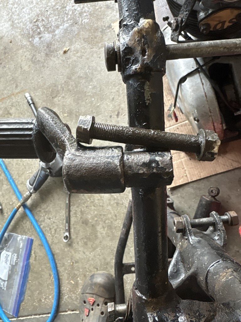 I was intending to use my heat gun but my neighbor had a very handy small propane blow torch so we used that and with 4 hands he could be “heat man” whilc I was BFH man. I destroyed one socket (although I think I can fix the end with a grinder) while pounding, but after continuing with heat and shock waves the shaft started to move. Once it moved a little then it had to come out. Few repositions to get more height for the shaft and quite a few smacks it left it’s home for the past 50 years.